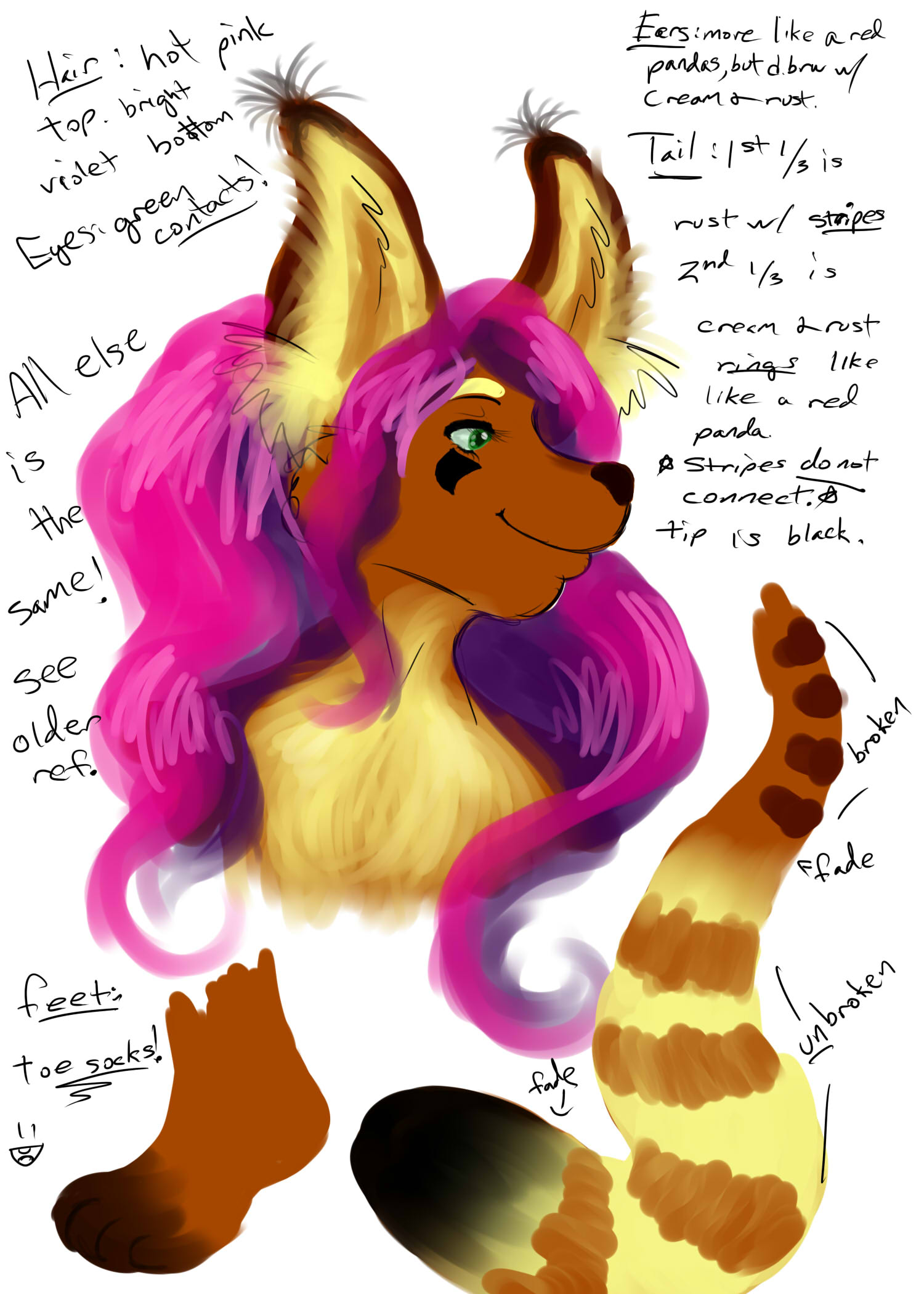 Hi hi I’m alive. Sorta. Supppp! I did a doodly doo. I kinda update my character Pandy’s look. She’s suppose to be like a red-panda/lynx/dog thing, but you couldn’t tell where the red panda was exactly. So I fixed it. :p